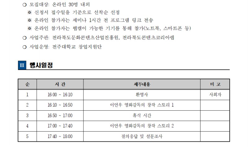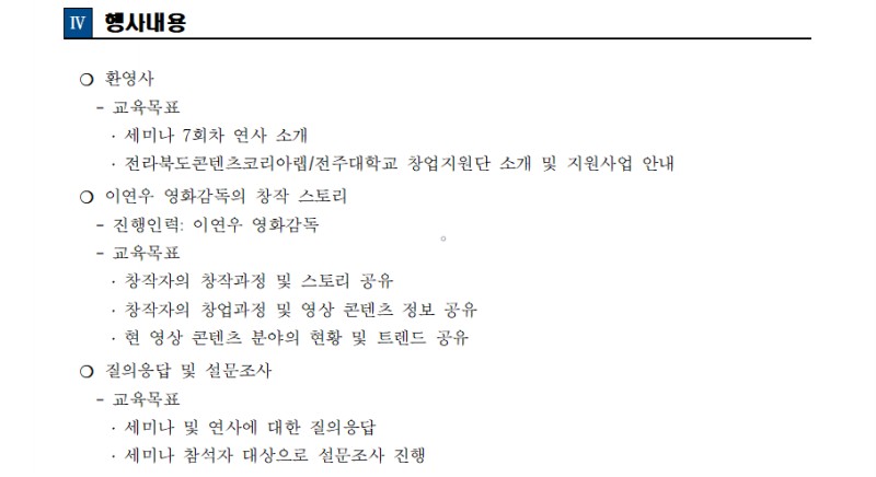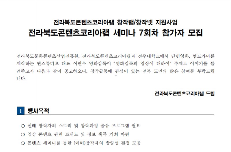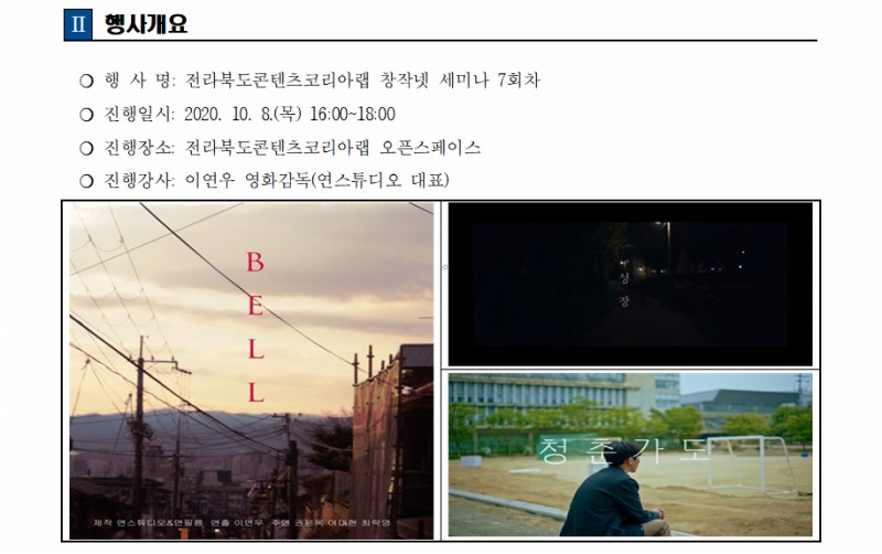 [이연우 영화감독] 2020년 전라북도콘텐츠코리아랩 창작넷 세미나 7회차 모집 공고